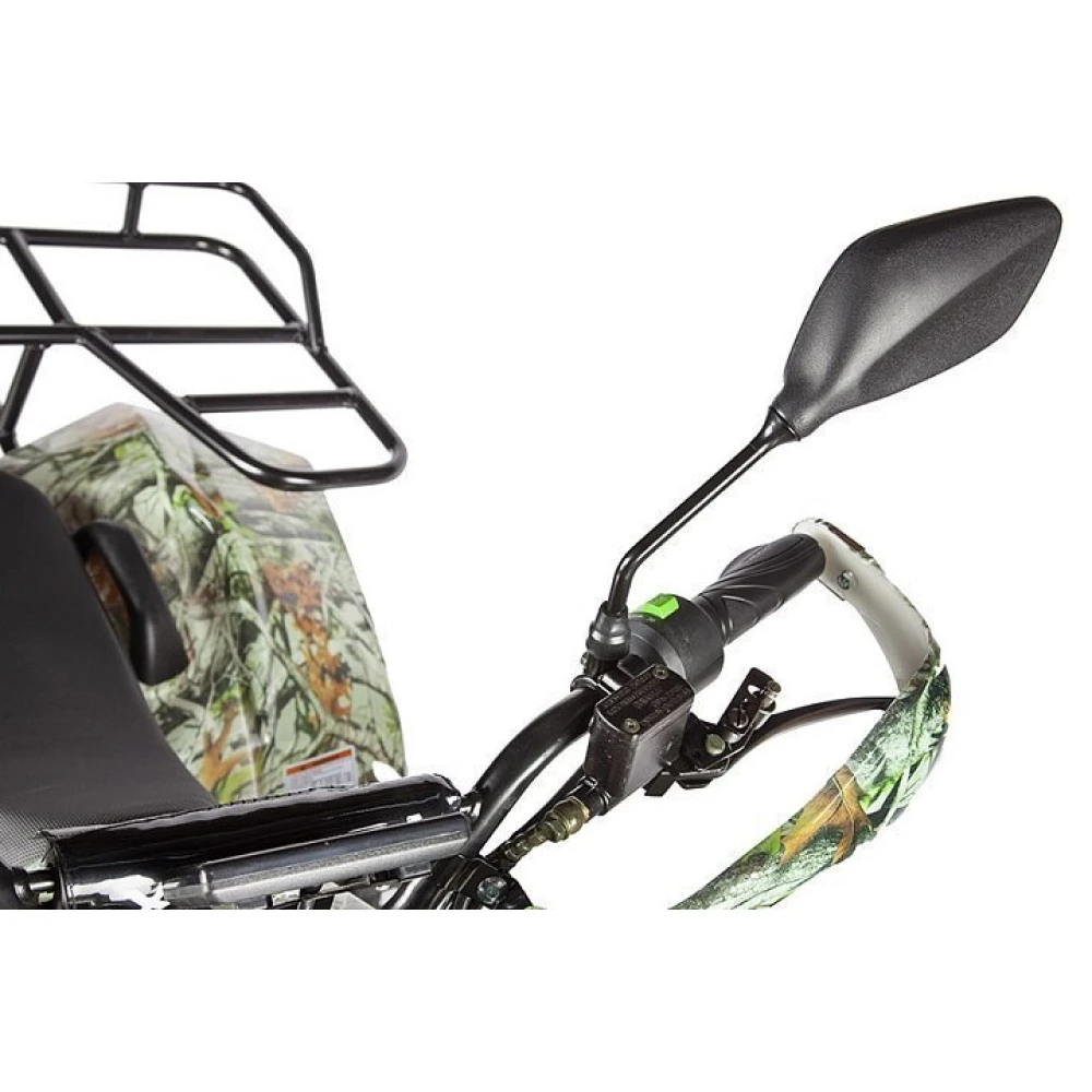 Электроквадроцикл укомплектован багажником, зеркалами заднего вида, охранной сигнализацией, безотказной тормозной системой.