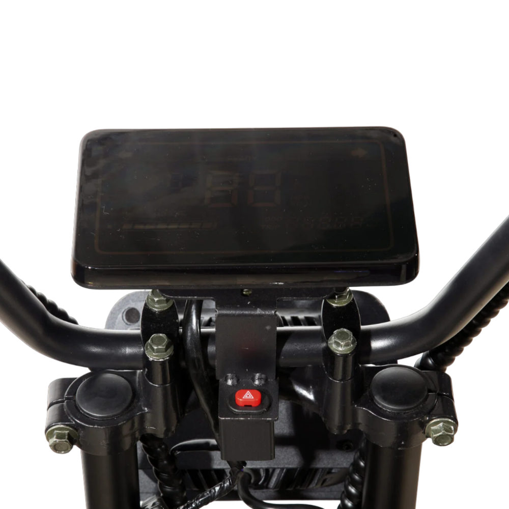 Мотор 3000 Вт разгоняет «Марусю» до 59 км/ч, а аккумулятор Li-Ion 72V 18Ah обеспечивает пробег до 45 км на одном заряде.